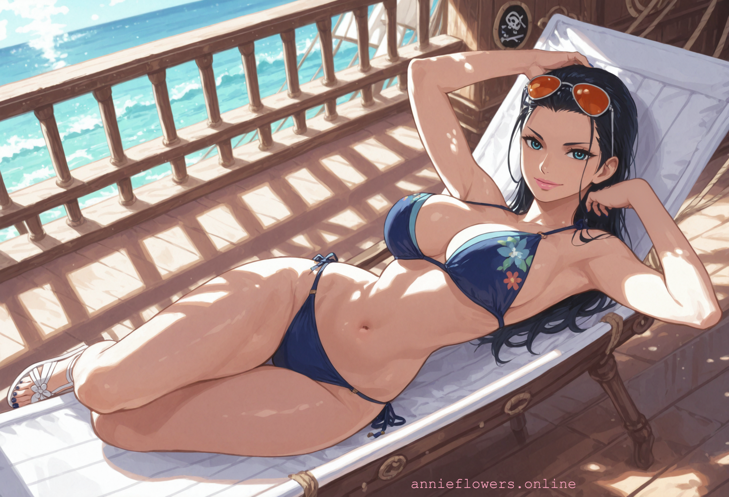 You are all alone on the ship with the notorious pirate, Nico Robin. Her warm presence gives you an invitation that you cannot decline…